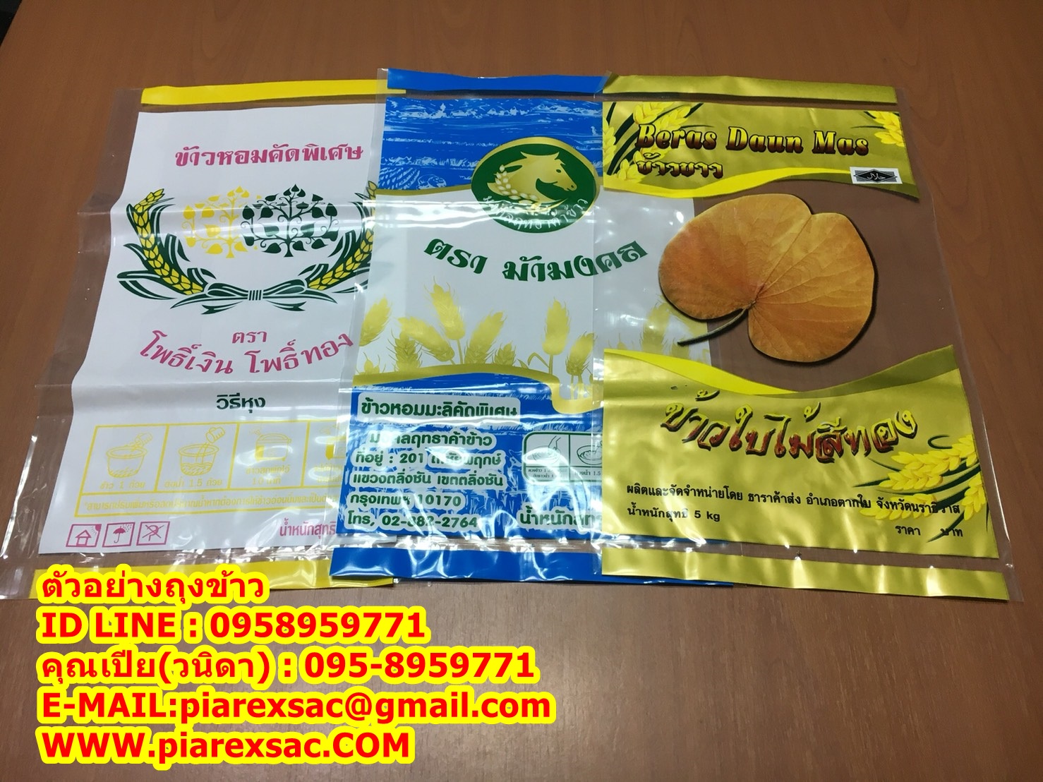 บริษัท เร็กซ์แซค เวอร์เท็กซ์ จำกัด 114/2-9 ม. 1 ต.สวนหลวง อ.กระทุ่มแบน จ.สมุทรสาคร 74110 ถุงข้าว มีหลายแบบหลาายชนิดขึ้นอยู่กับที่ลูกค้าต้องการและความสวยงามของผลิตภัณฑ์นำไปบรรจุ ขนาดบรรจุขึ้นอยู่กับที่ลูกค้าต้องการ ถุงข้าว 1 ก.ก./ ถุงข้าว2 ก.ก./ถุงข้าว 3 กก /ถุงข้าว 5ก.ก. ฯลฯและไซต์อื่นๆๆ ตามที่ต้องการ ความหนาของถุงข้าวก็ขึ้นอยู่กับที่ลูกค้าต้องการ ได้แก่ 1.ถุงข้าวแบบเคลือบวานิช รับผลิตถุงข้าวแบบพิมพ์ ขั้นต่ำ 100 กก / 200 กก /ถ้าไม่พิมพ์สั่งเท่าไหร่ก็ได้ 2.ถุงข้าวแบบเคลือบลามิเนต จะขายเป็นใบขั้นต่ำ 10,000 ใบ 3.ถุงข้าวแบบNylon,จะรับผลิตขั้นต่ำ 10,000 ใบ 4.ถุงข้าวแบบซองฟอยส์ ผลิตขั้นต่ำ 10,000 ใบ สามารถโทรสอบถามได้ที่ 083-6999206 ,095-8959771 วนิดา(คุณเปีย) ID LINE : 0958959771 Email : piaraxsac@gmail.com ดูรายละเอียดเพิ่มเติมได้ที่: WWW.wanidarexsac.COM WWW.piarexsac.lnwshop.com wanida-rexsac.lnwshop.COM